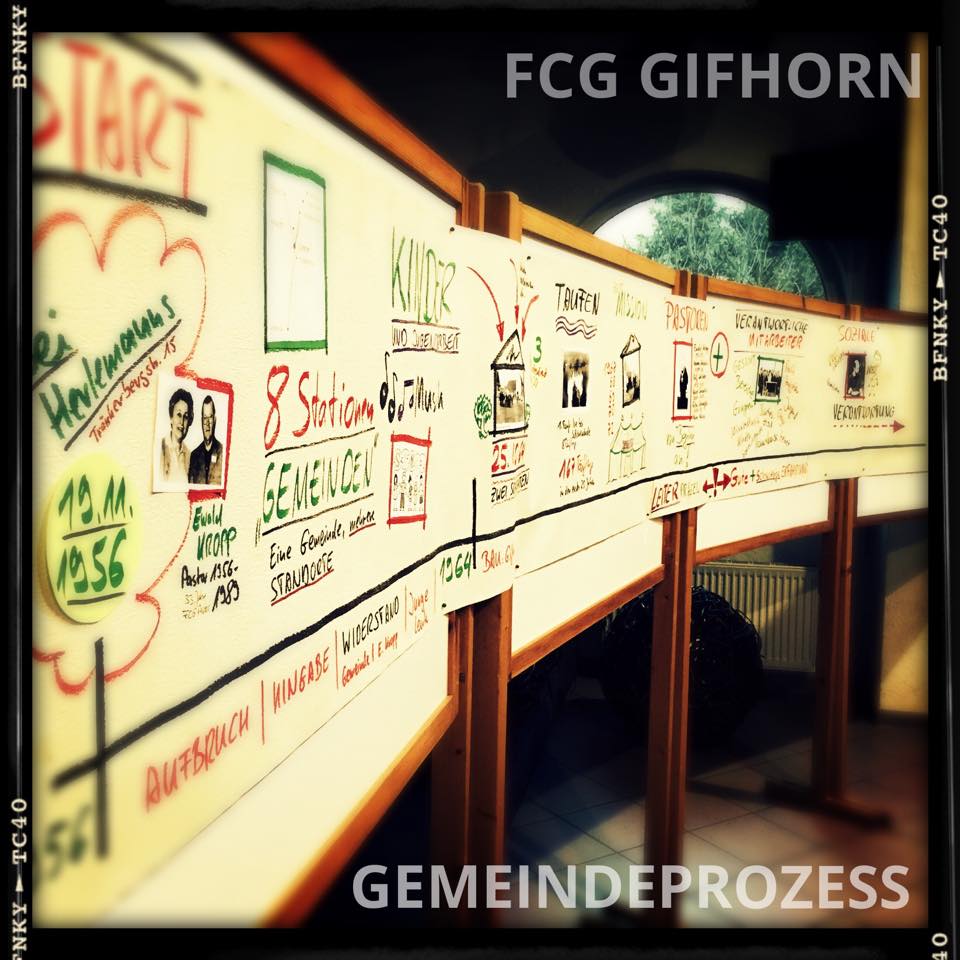 Wir fragten uns also was die „Erbanlagen, die Gene …“ der FCG sein könnten. Dazu wagten wir den Blick in die Geschichte. Bei Veränderungsprozessen taucht immer wieder diese Frage von langjährigen Leuten der Gemeinde auf: „War den alles falsch was wir in der Vergangenheit gemacht haben?“ Die sorgenvolle Anfrage hat eine inhaltliche und eine emotionale Seite! Natürlich nicht! Obwohl sicher manches falsch war. „Erfahrung ist schließlich das was man hat, nachdem man es gebraucht hätte!“ las ich einmal vor 35 Jahren als Zitat. Wer würde im Rückblick nicht auch Fehler erkennen müssen. Als Christ muss das nicht beunruhigen. Wir werden nicht durch unser fehlerfreies Leben erlöst, auch nicht durch ein fehlerfreies Gemeindeleben. Sondern durch Christus!