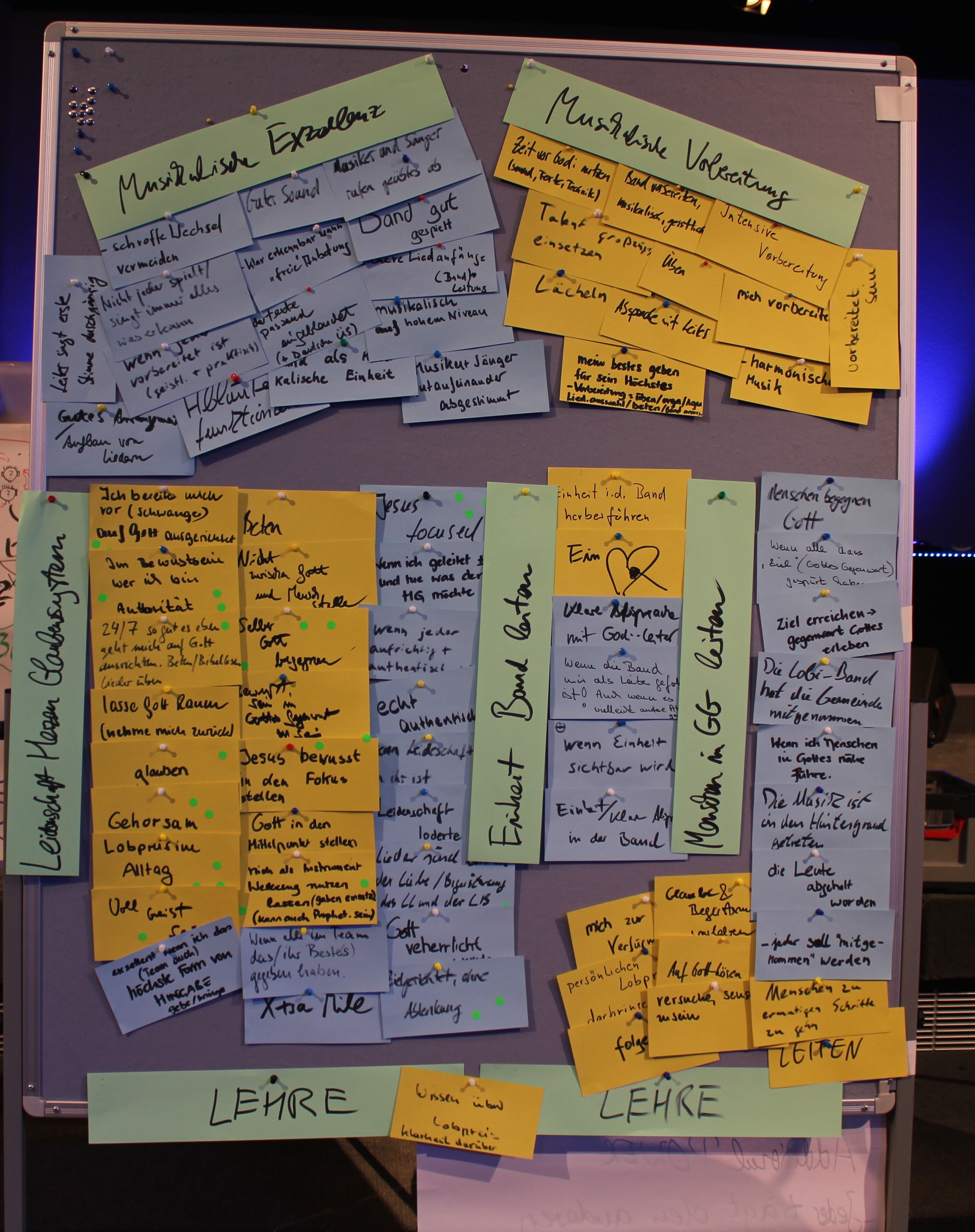 Die Antworten auf diese Fragen hat jeder Lobpreisleiter für sich selbst auf Kärtchen geschrieben. Hier sind sie: