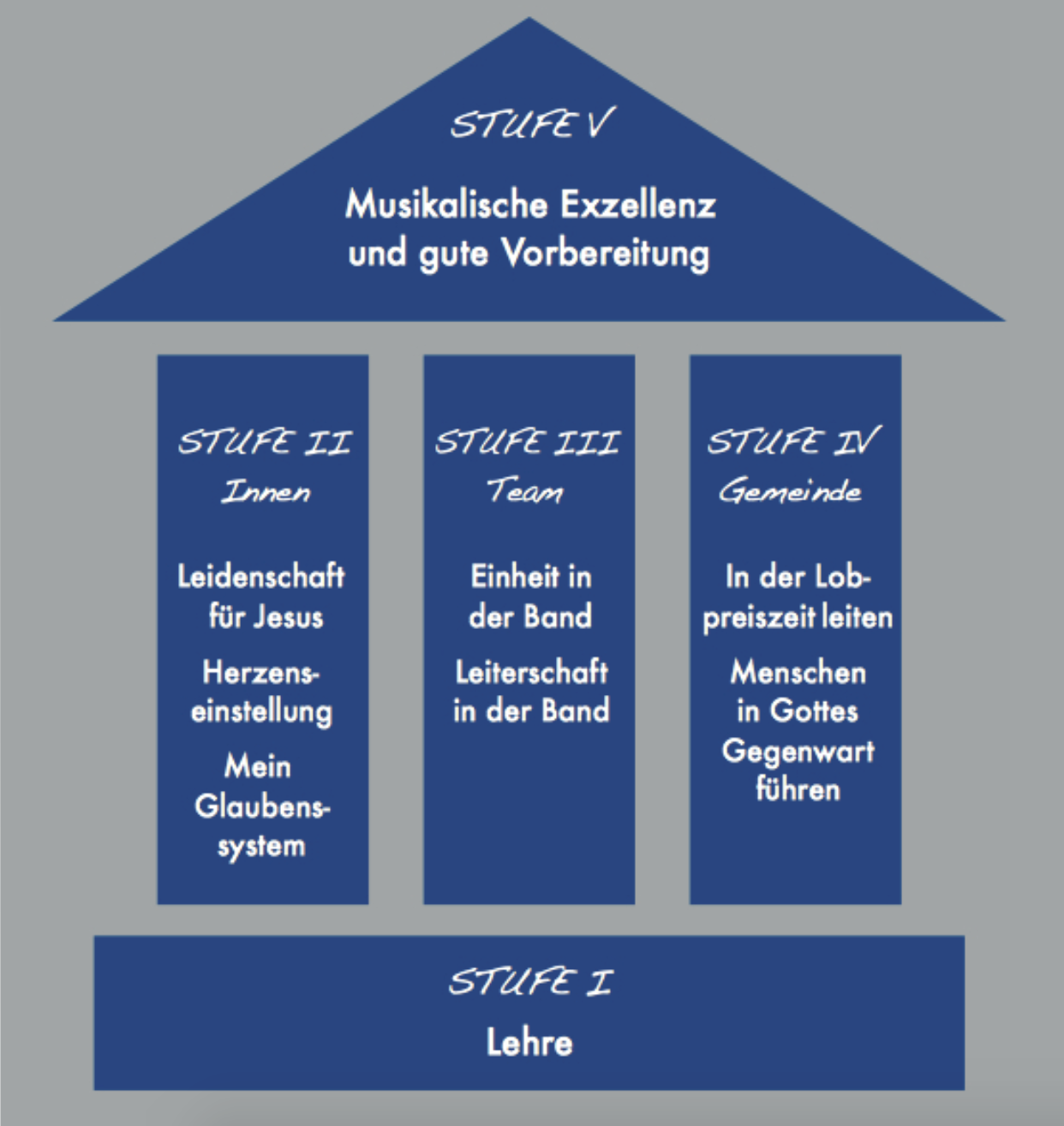 Um das anschaulich darzustellen, nutzen wir das Bild eines Hauses mit drei Säulen. Jede Ebene baut auf die andere auf. Ein Haus, bei dem es nur um das Dach (Musik) geht, ist kein sinnvolles Haus.