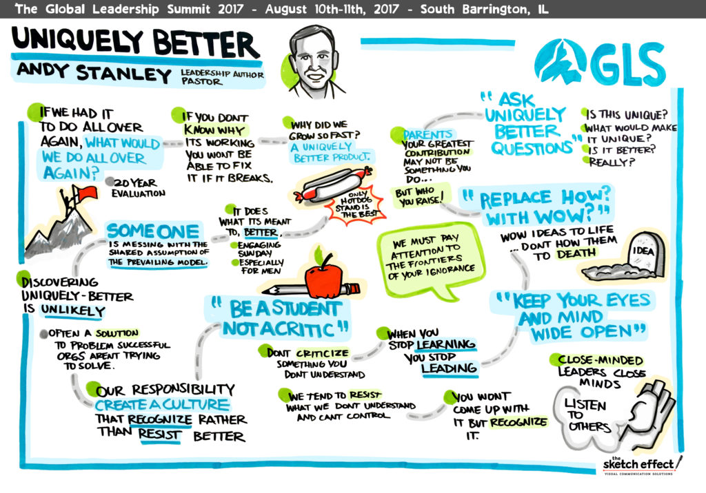 Die Willow Creek Association hat die Zusammenfassung der Vorträge vom #GLS17 in grafischer Form bereitgestellt. Mit »Special thanks to Jai at The Sketch Effect for these graphic summaries of each of the #GLS17 faculty presentations!« Sehr cool, kann man sagen … Weiter unten sind Kostproben zu sehen. Im Internet kann man unter www.followthegls.com von den Angeboten profitieren. Deutschsprachige Führungskräfte in Europa können hier von Willow profitieren: