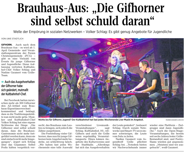 Die Gifhorner Rundschau hat uns auch interviewt und hat am Mittwoch den Artikel gebracht:
