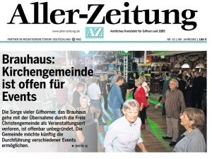 Nachdem Uwe Stadtlich, der Gifhorn-Redakteur der Aller Zeitung, mich gestern ausführlich interviewt hat, ist heute dieser Artikel erschienen. Einen Teil unserer Geschichte der Veränderung und Erneuerung haben wir hier erzählt.
