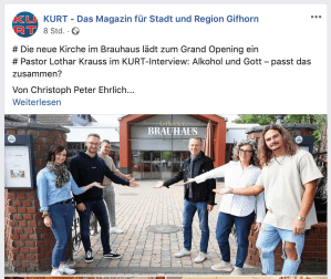Gifhorn Die Kirche rockt das Brauhaus. Die Freie Christengemeinde Gifhorn (FCG) lädt am morgigen Sonntag zum „Grand Opening“ ins Brauhaus ein. „Komm, pack deine Family ein und feiere mit uns“, lautet die lockere Einladung, mit der sich die Eigentümer der Traditionsimmobilie der Öffentlichkeit von 10 bis 17 Uhr vorstellen möchten.