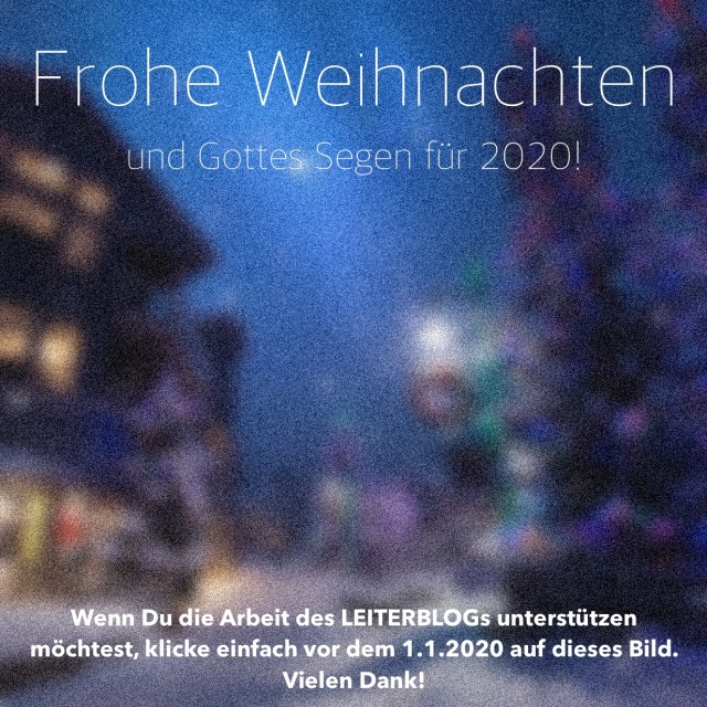 Update 1.1.2020: Vielen Dank alle, die meine Arbeit für den Leiterblog unterstützt haben. Eure Wertschätzung ist ein Geschenk, ein Ansporn und eine Anerkennung für die Arbeit. Wow … Gesegnetes 2020. Euer Lothar.