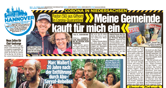 In unseren Online Gottesdienst haben sie schon reingeschaut. 1900 x haben das Leute jetzt schon gemacht! Fanden es spannend, wie wir das jetzt machen. Dazu dann in der Zeitung mehr, damit die Gifhorner im Bild bleiben. Wie lebt eine Kirche konkret. In diesen Zeiten, wo nichts mehr geht? Und wie geht es einem der ersten beiden Corona-Infizierten der Stadt? Das Gesundheitsamt ruft heute nicht an.