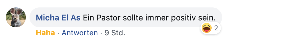 »Ich muss mal was loswerden. Dein Blog, dein Tagebuch, deine Liste mit Online-Gottesdiensten habe ich jetzt gefühlt schon hunderte Male weiter empfohlen. Du machst das genial! Ich fühle mich sehr geehrt, dass ich mit Dir …! Du bist ein großartiger Mensch und ein vorbildlicher Leiter! DANKE!«