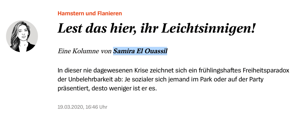 Das erklärt dieses Interview, das wir gestern gepostet haben. Wir finden es super erklärt. Verantwortlich. Sachlich. Verbreitet keine Panik. Aber zeigt den Ernst der Lage. Den haben viele noch nicht erfasst. Corona Partys! Geht’s noch?! Andere werfen mit Theorien um sich, die nicht unwidersprochen bleiben dürfen. Meine ich. Rainer Harter vom Gebetshaus Freiburg hat das gut gemacht. Für die frommen Stilblüten. Und Christian Drosten macht das beständig. Sachlich antworten. Auch auf das, was mancher Promovierte von sich gibt. Gut so! Ich liebe bescheidene Experten.