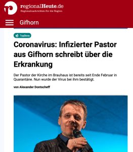 In unseren Online Gottesdienst haben sie schon reingeschaut. 1900 x haben das Leute jetzt schon gemacht! Fanden es spannend, wie wir das jetzt machen. Dazu dann in der Zeitung mehr, damit die Gifhorner im Bild bleiben. Wie lebt eine Kirche konkret. In diesen Zeiten, wo nichts mehr geht? Und wie geht es einem der ersten beiden Corona-Infizierten der Stadt? Das Gesundheitsamt ruft heute nicht an.
