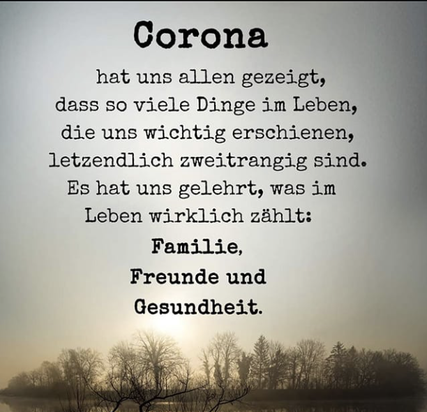 Hier ein Gedicht, das meine Schwester gepostet hat (nicht von ihr) und das Ideen gibt für unser Denken über diese Pandemie.