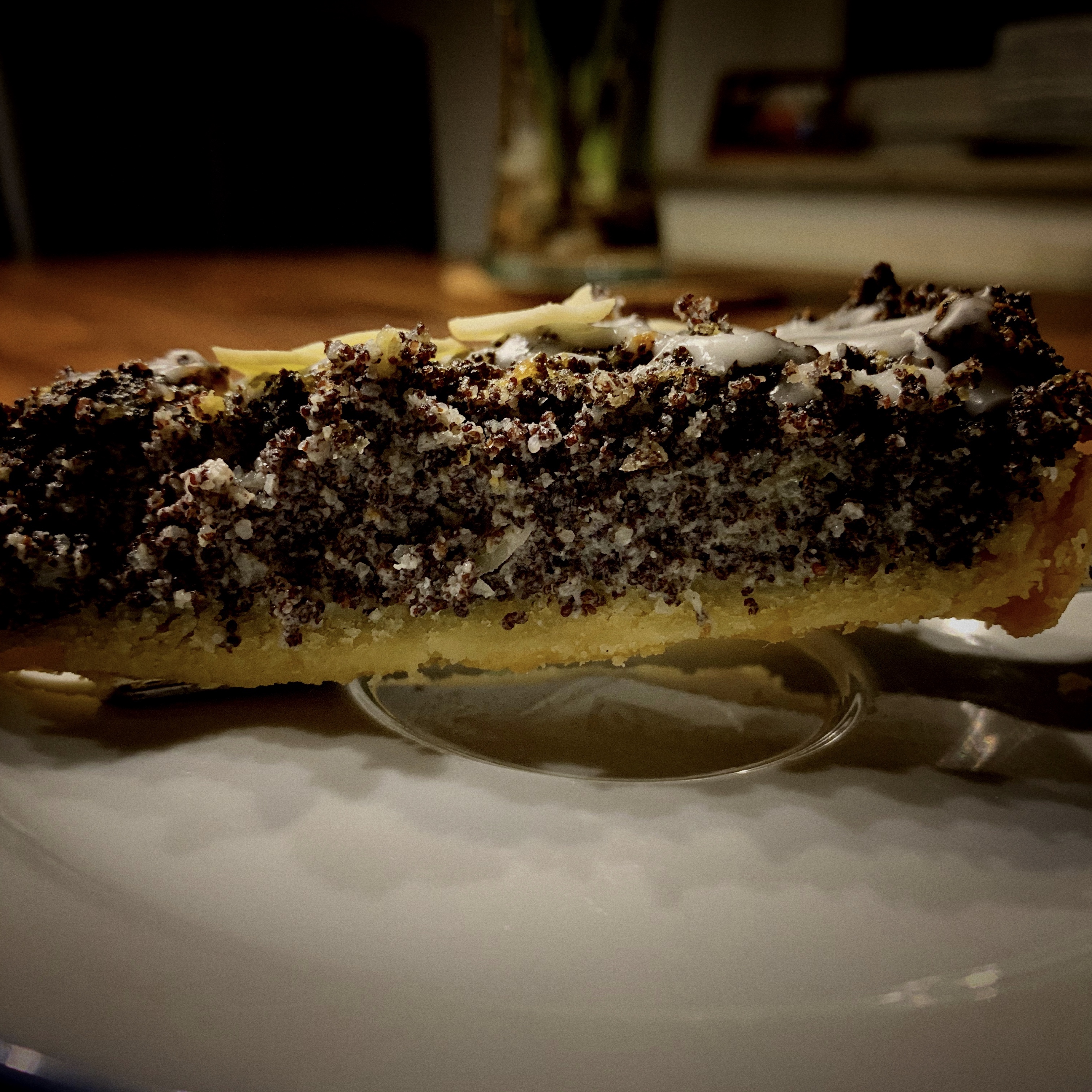 Nochmal beschenkt! Am Abend klingelt das Telefon. „Schaut mal auf der Terrasse. Ich habe euch etwas hingestellt.“ Selbst gebacken. Mohnkuchen. Ich liebe Mohnkuchen. Also ganz wenig Kuchen. Ganz viel Mohn. Genau mein Ding.