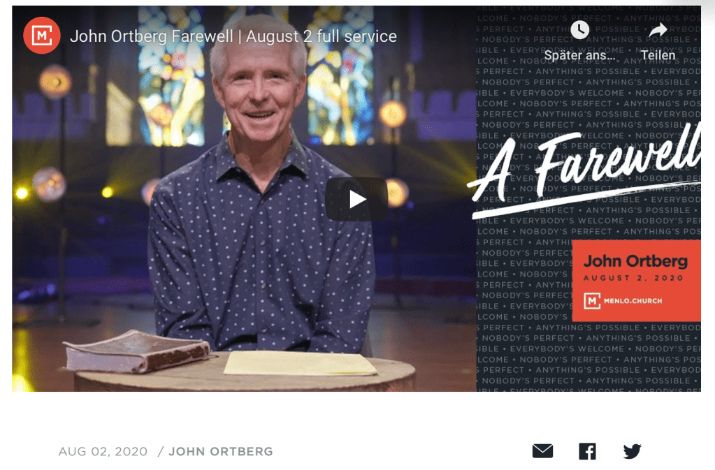 Die Abschiedspredigt von John Ortberg ist hier zu sehen (ab Minute 23:25):