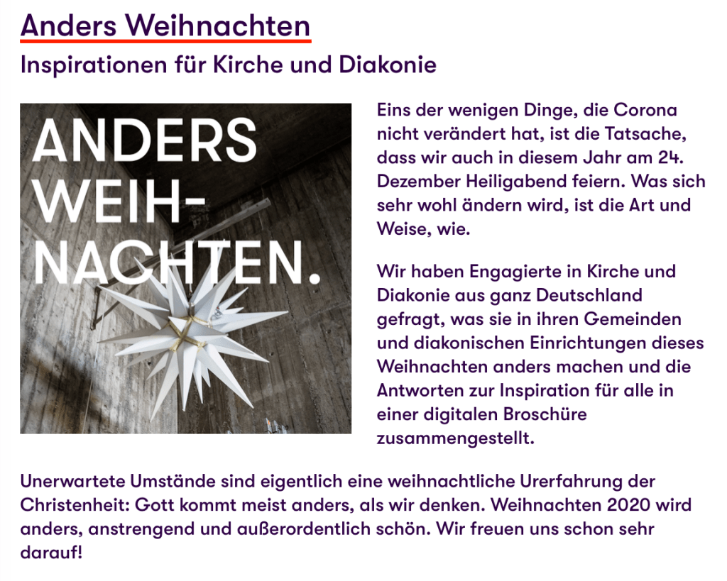 … hat auf 27 Seiten Ideen, Anregungen und Tipps zusammengestellt, wie Kirchen Weihnachten auch in Zeiten der Pandemie gestalten können.