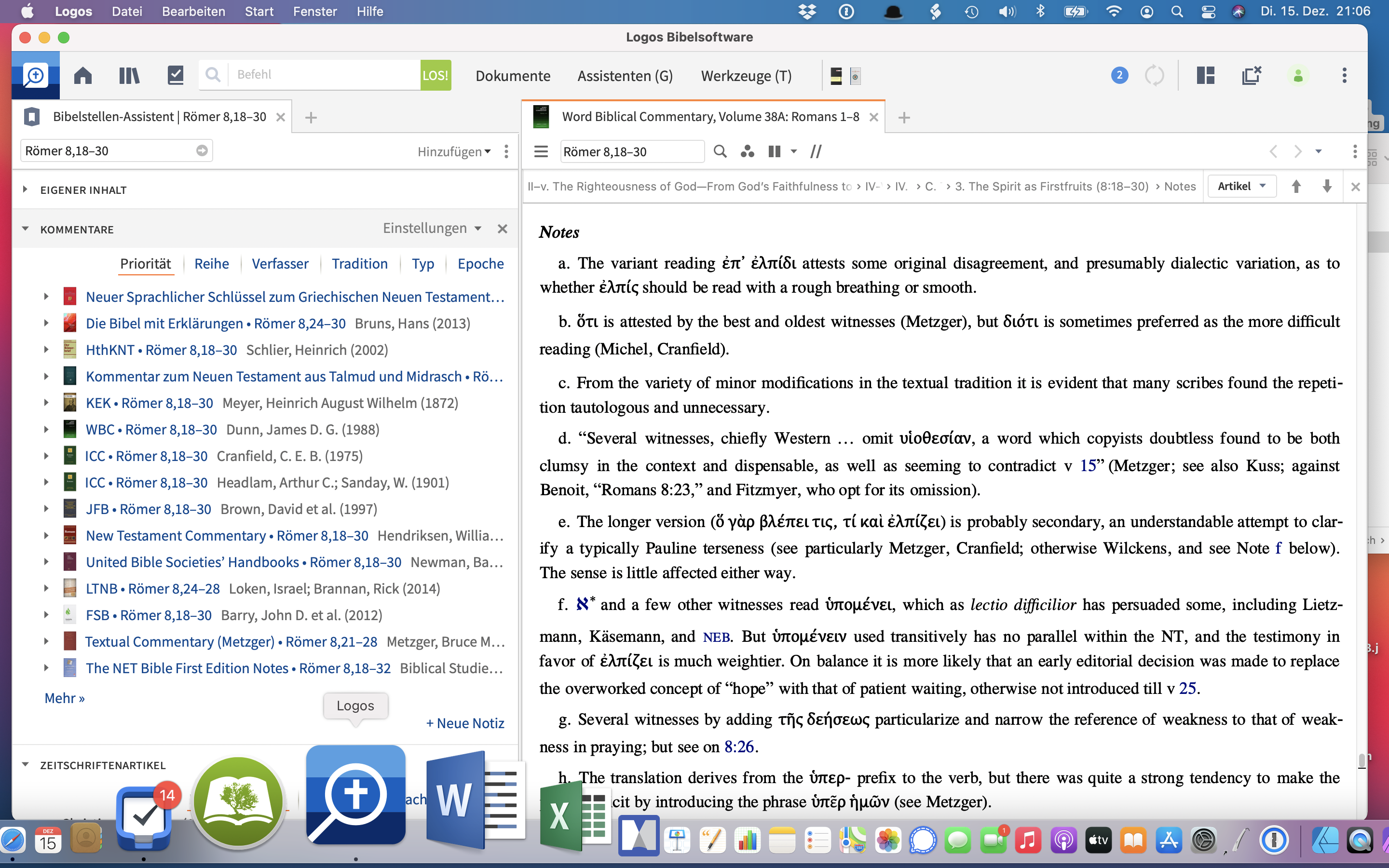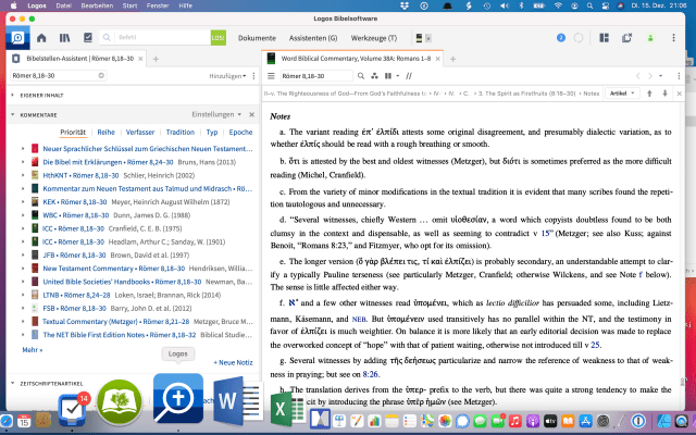 Das ist mit wenigen Klicks auf den Bildschirm zu bekommen. So tauche ich direkt ein. Die Schätze der Kommentare, Lexika, Bibeln … sind in Logos immer nur einen Klick entfernt. So gut!