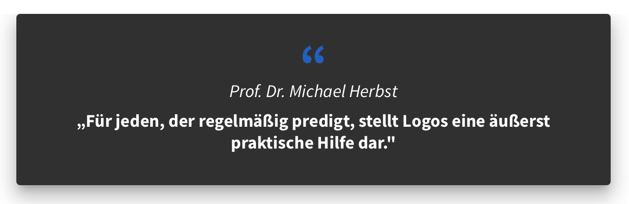 Logos ist für mich die alternativlose Empfehlung dich ich gebe, wenn jemand gründlich, gut und mit überschaubarem Zeitaufwand die Arbeit mit und an der Bibel aufnehmen möchte. Ganz gleich, ob es hauptberuflich oder ehrenamtlich geschieht. Und ganz gleich, in welcher Rolle man am Start ist: Pastor, Lehrer, Jugendleiter, Kindergottesdienstmitarbeiter, Kleingruppenleiter …