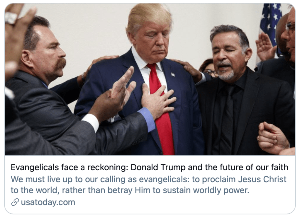 Für evangelikale Leitende und Pastor/innen in den USA ist jetzt der Zeitpunkt gekommen, an dem wir aufstehen und dieses gefährliche und auf Lügen basierende Verhalten eines Menschen verurteilen müssen, der deutlich erkennbare Charakterschwächen zeigt und sich nur allzu bereitwillig bestimmten politischen Positionen anschließt. Diese Tage, wie wir sie jetzt erleben, erfordern, dass eine Führung, die den Dienst an anderen zu seiner Basis macht, dieses Verhalten, das moralisch abstoßend und offenkundig falsch ist, als solches benennt und gleichzeitig nach dem nötigen Wandel und größerer Einheit inmitten einer tiefgreifenden gesellschaftlichen Spaltung ruft.