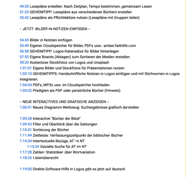 Aber man sollte Zeit investieren. Ich würde meinen, dass man – verteilt über ein paar Wochen – 20 Stunden gezielt investieren sollte. Der Nutzen wir sehr groß sein. Jeden Tag ein kleines Zeitfenster einplanen. Auf dem Weg entdeckt man die Möglichkeiten und kann sie direkt selbst auszuprobieren. Was mir sehr gut gefällt sind die „Show-Notes“ der Videos, die wie ein detailreiches Inhaltsverzeichnis mit auf den Punkt zu dem Thema bringen, in dem ich mich fortbilden will.
