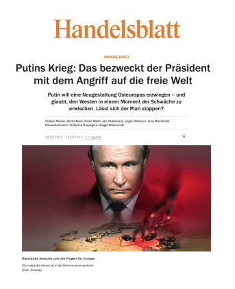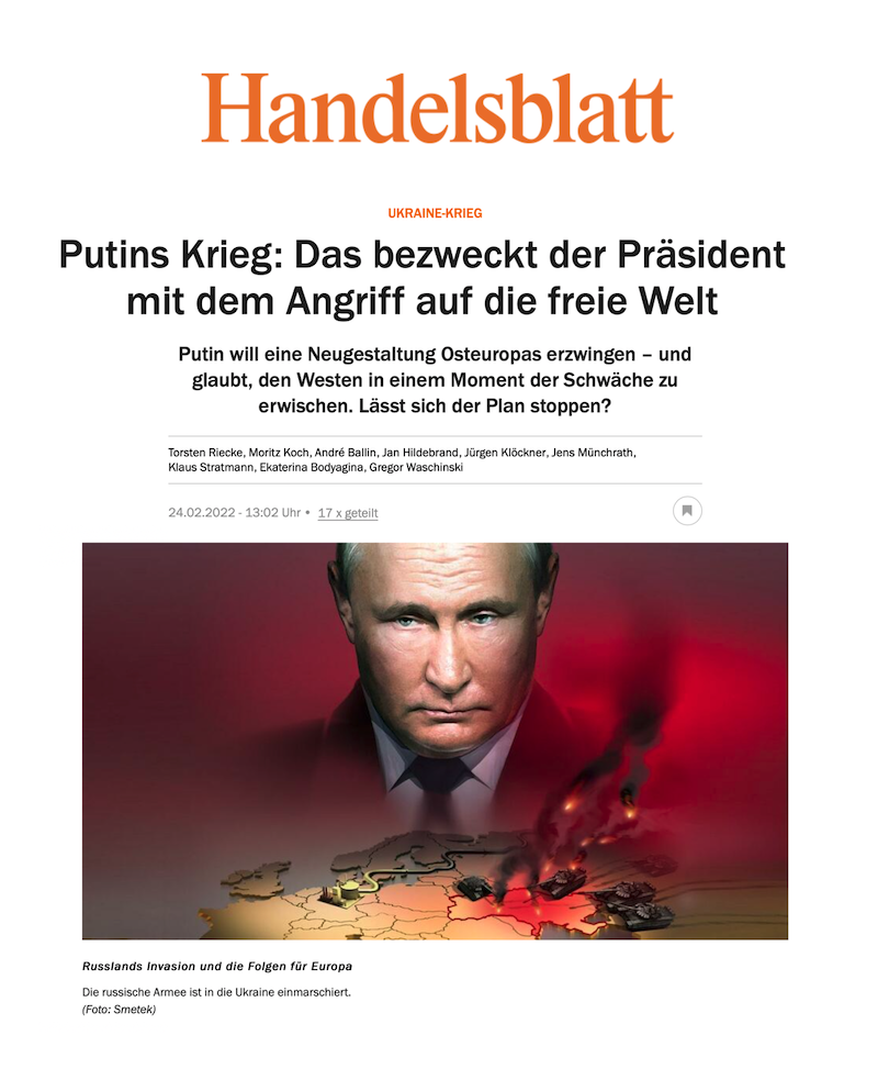Es ist Putins Krieg! Das ist überall zu lesen. Hier ein Aufmacher des Handelsblatt. Stimmt das? Politiker wiederholen diese Formulierung beständig weil es ihnen wichtig ist, zwischen dem russischen Volk und ihrer Führung zu unterscheiden. Gut so. Wer sagt die Wahrheit über diesen Krieg? Schwer zu sagen, da ja die Wahrheit das erste Opfer jeder kriegerischen Auseinandersetzung ist.