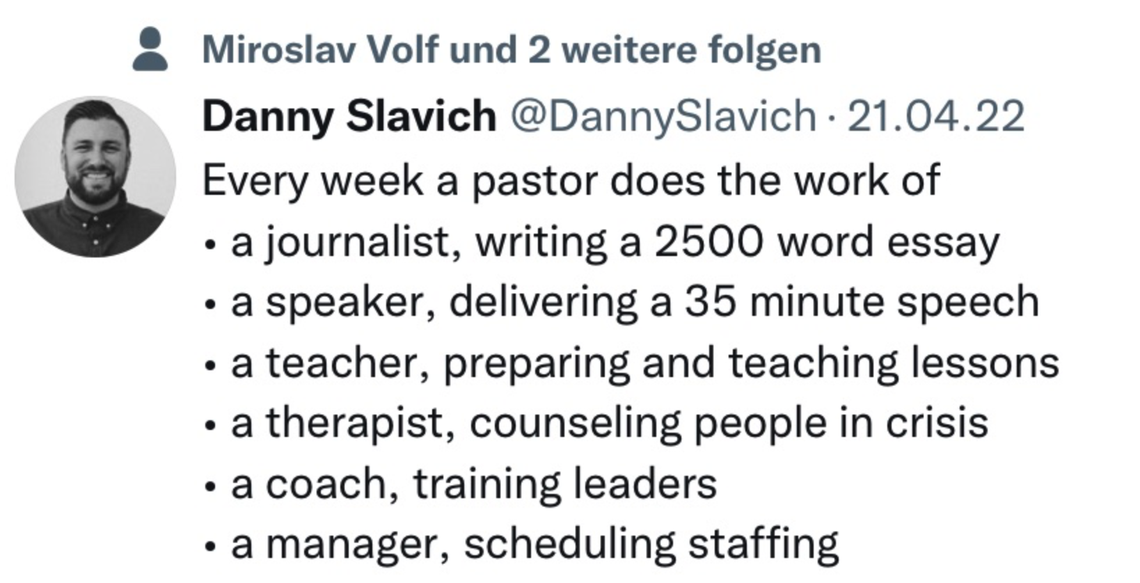 Es war schon immer eine schöne, aber auch anspruchsvolle Aufgabe, wie es Danny Slavich wunderbar zusammenfasst. Sicher, auf den ersten Blick stehen die besonderen Privilegien, wunderschönen Erfahrungen, SINN-stiftenden Inhalte … im Blickfeld. Aber auf den zweiten Blick drängen sich dann diese vielfältigen „Herausforderungen“ und eine Rollenvielfalt, die ihresgleichen sucht, ins Bild!