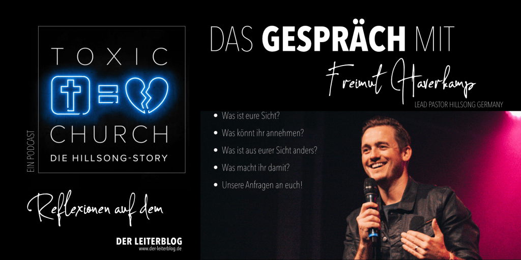 Auch habe ich in dieser Woche den direkten Kontakt zu Freimut Haverkamp aufgenommen, der der Lead Pastor von Hillsong Germany ist. Freimut ist bereit, sich in einem Interview mit dem DER LEITERBLOG den Fragen zu stellen, die mir und uns als Leser in der Reflexion des Podcasts kommen. Verständnisfragen. Kritische Fragen.