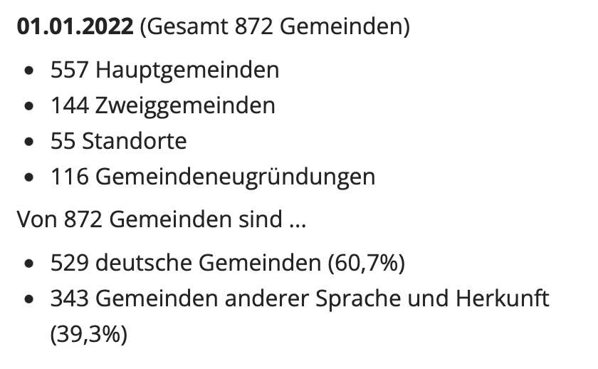 „Und auch die Anzahl der Gemeinden, die wächst. Im Januar 2022 gibt es deutschlandweit knapp 560 Pfingstgemeinden.“