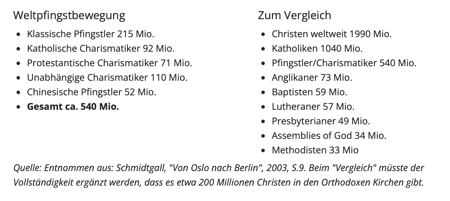 Der Bundeswahlleiter gibt für das Jahr 2021 61,18 Mio Wahlberechtigte für Deutschland an. 64.804 Mitglieder finden wir in Pfingstgemeinden des BFP, oder greifen wir höher: 150.000 Leute inkl. der Gäste der Pfingstgemeinden könnten also wahlberechtigten sein. Ist das jetzt ein großes Thema? Im Ernst? 150.000 gegenüber 61.03 Mio. (die Pfingstler sind in der Zahl schon abgezogen!) ? Wird hier nicht eine Übertragung von Zuständen aus anderen Ländern krampfhaft versucht?