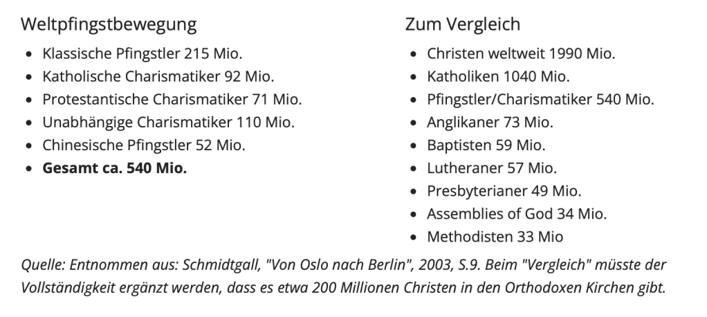 Der Blick geht zur Pfingstbewegung, „die am schnellsten wachsende Religionsgemeinschaft der Erde.“ Echt jetzt? Laut einer Studie des Pew Research Centers in den USA ist der Islam die am schnellsten wachsende Religion weltweit. Diese Einschätzung teilt die F.A.Z., die Welt, der Südkurier, das ZDF, Katholisch.de, der Deutschlandfunk … Einfach eine Anfrage an Google stellen, und schon ist man bei den Dokumenten. Wieder mein Dauerbrenner: Recherchequalität!