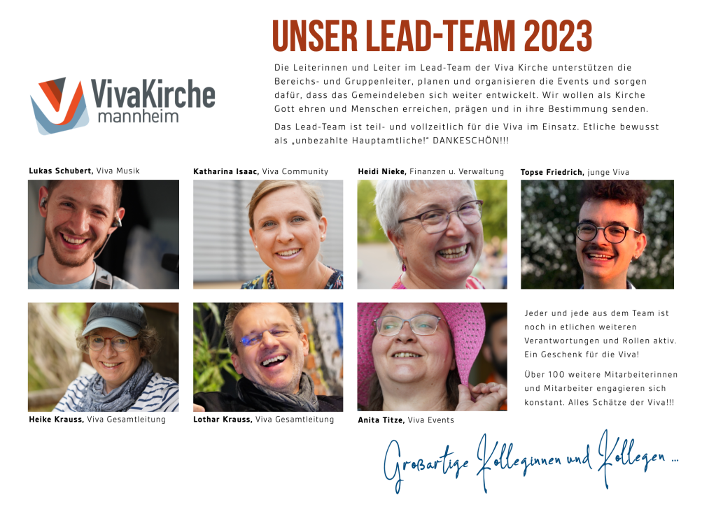 Ohne die vielen Bereichs- u. Gruppenleiter, die Mitarbeitenden auf allen Ebenen, würde das Gemeindeleben der Viva nicht gelingen können. Wir sind allen, die ihr Herz, ihr Hirn, ihre Talente und ihre Zeit einbringen, sehr, sehr dankbar! So ein Schatz.