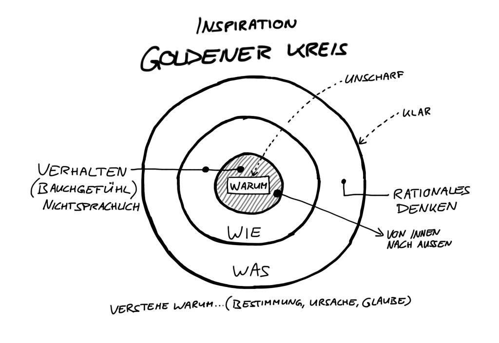 Es braucht ein Miteinander, von Gottes unverfügbarem Wirken, als auch unsere Tun. Dazu sind wir befähigt, begabt, in der Lage! Gott macht es. Mit uns. Gott segnet das „Werk unserer Hände“ (Psalm 90,17). Was könnte unser Beitrag sein? Ich denke als Verantwortlicher in dieser Herausforderung vom „Golden Circle“, dem „Goldenen Kreis“ her, den Simon Sinek populär gemacht hat. – Hier geht es zu seinen hilfreichen Büchern, hier zu seinem legendären Ted-Talk, der bereits 62 Mio mal angesehen wurde!!! WOW 🙈. Er erläutert den Golden Circle und vermittelt die Grundidee. Jede Führungskraft sollte sich damit beschäftigt haben, finde ich.