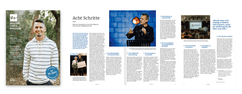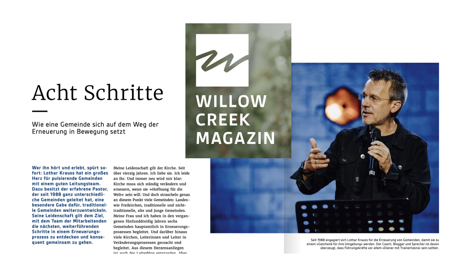 Immer wieder taucht die Frage auf, was nach 35 Jahren Erneuerungsarbeit in Kirchen und Gemeinden wesentliche Punkte sind, auf die es zu fokussieren gilt. Für eine Konferenz an der Nordsee und die aktuelle Ausgabe vom Willow Creek Magazin habe ich 8 Schritte zu Papier gebracht. Sie sind aus meiner Sicht unerlässlich, wenn eine Kirche aufbrechen und in ihre Bestimmung kommen möchte. Hier sind sie: