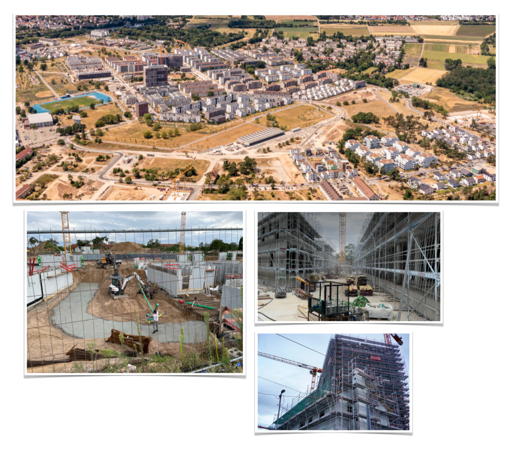 Um uns herum wächst ein neuer Stadtteil. Mannheim-Franklin. Hier wird richtig viel gebaut. 10.000 Leute werden hier am Ende wohnen. Viele, viele Leute sind dafür jeden Tag aktiv. Unmengen an Material wird beigeschafft. Energie eingesetzt. Was alle unterschiedlichen Bauprojekte in Franklin gemeinsam haben: sie haben einen Auftraggeber und folgen einem eigenen Plan. Am Ende entstehen viele Gebäude.