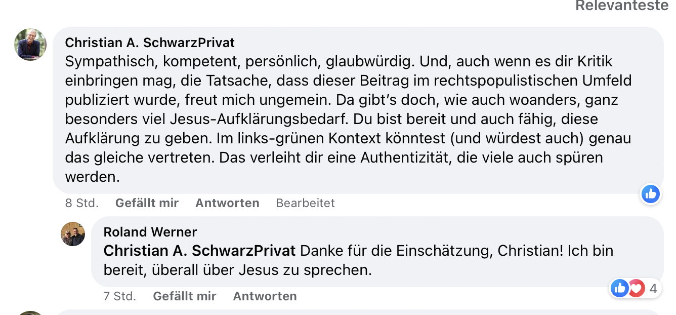 Christian Schwarz hat eine interessante Anmerkung auf Facebook dazu eingebracht, die Roland dann auch direkt kommentierte: