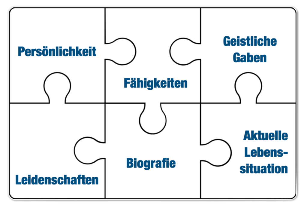 *richtig = Menschen, die verfügbar sind! Wer zwar talentiert ist, aber nicht verfügbar, kann dem Team nicht wirklich helfen. Dann kommt Hingabe dazu, Zeit, Eigenengagement und Leidenschaft. Wenn die Aufgaben zu den Gaben und Fähigkeiten, aber auch zur Lebenssituation passt, dann kann Momentum entstehen. Sie erleben, wie Gottes Lächeln auf ihnen ruht und sie an diesem Platz in ihrer Berufung wachsen. Ein Schaubild führt uns etliche der Komponenten immer neu vor Augen: