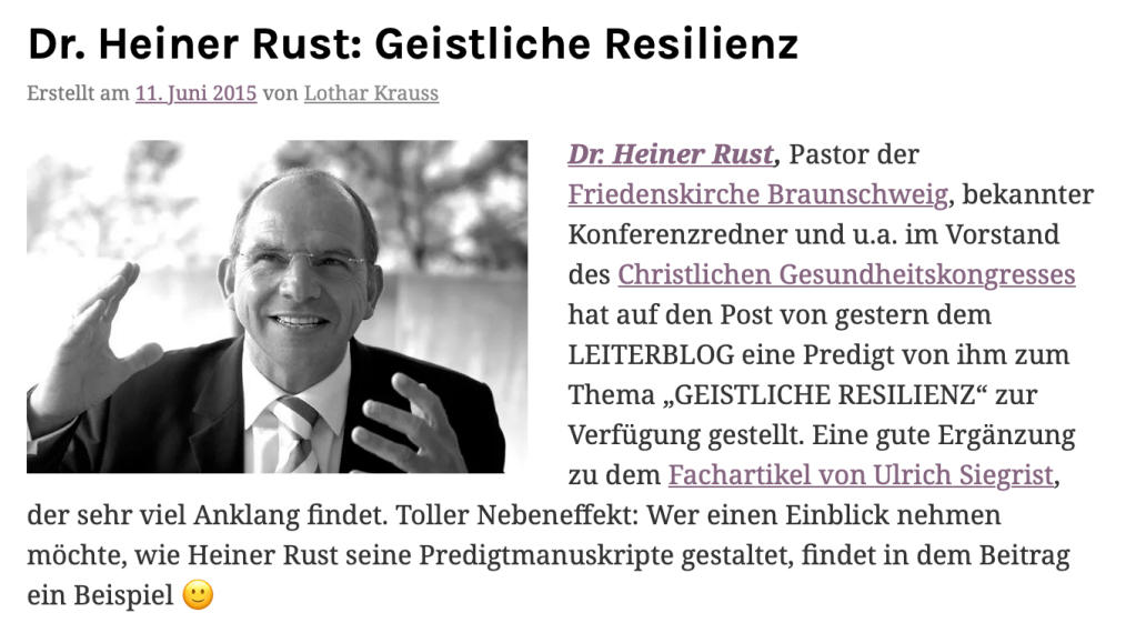 Dr. Heiner Rust hat sein Manuskript zur Frage „Geistliche Resilienz“ für den Blog bereitgestellt, der mit einem Klick auf das nächste Bild zu lesen ist.