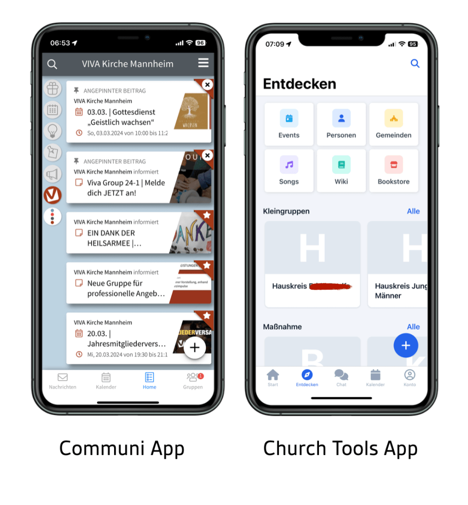 Communi, Churchtools App finden wir vom Design her nicht so prickelnd.