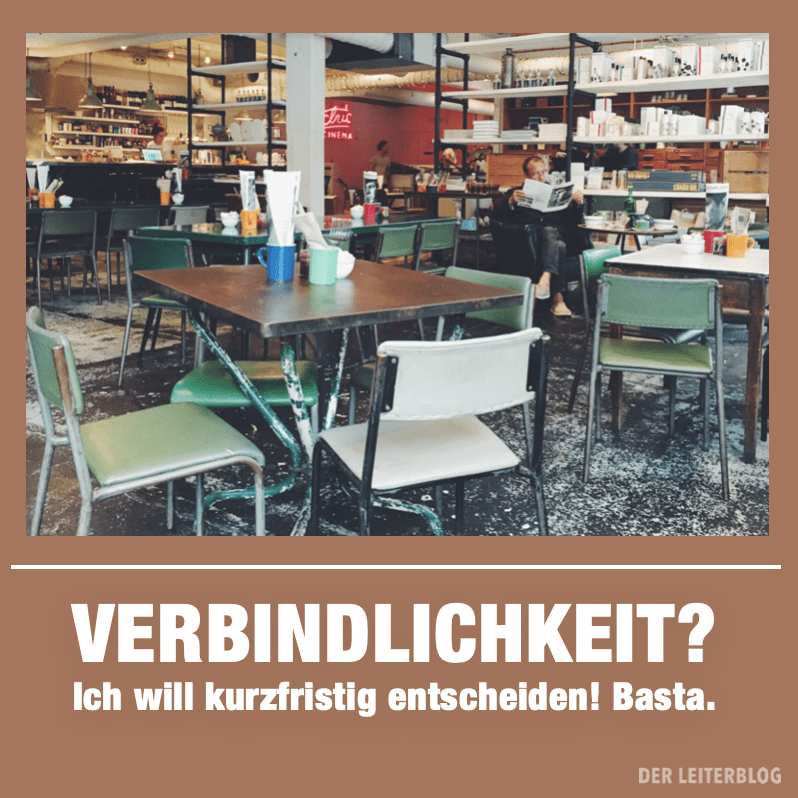 Wir beobachten seit vielen Jahren einen Wandel. Nicht immer wollen Menschen sich so verbindlich machen. Wenn wir Führungsleute das dann kritisch hinterfragen, geraten wir durchaus immer wieder einmal in die Defensive: „Sei doch nicht so eng! Hab doch Verständnis. Der meint es doch nicht böse. So ist das eben …“