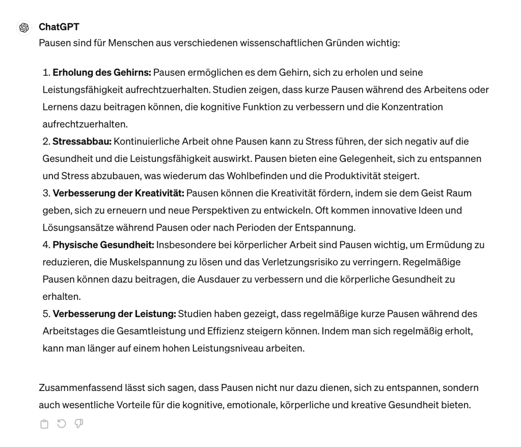 Also, Pause! Warum eigentlich? Ich habe ChatGPT gefragt!