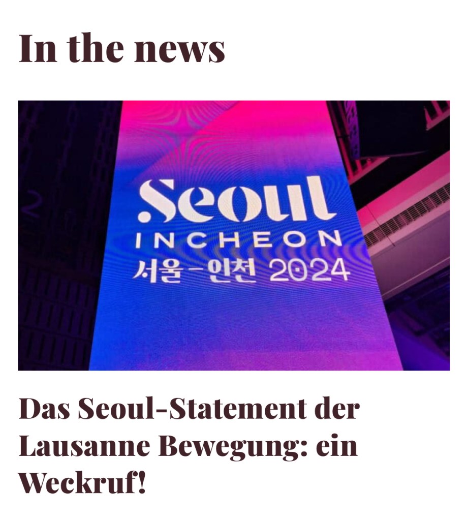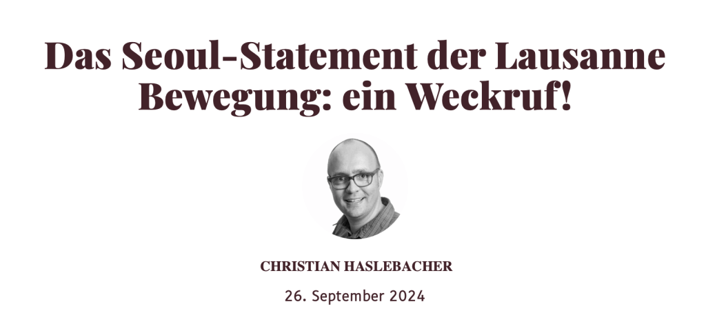 Christian Haslebacher, der Leiter der Viva Kirche Schweiz und Teilnehmer in Seoul hat das Statement kurz vorgestellt und eine erste Einschätzung dazu geschrieben. Er meint, dass es ein Weckruf sei. Der Kongress geht noch bis zum 28. September und kann auch Online mitverfolgt werden. Mehr dazu unten.