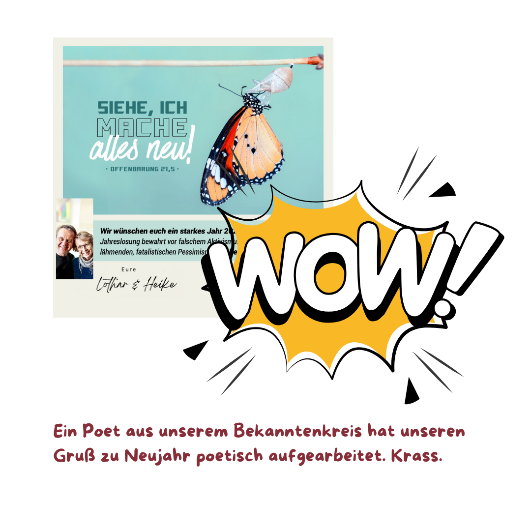 Wow, danke für diesen genialen Blick auf die Jahreslosung 2026. Das macht Mut, ohne Angst nach vorne zu schauen und zu gehen.