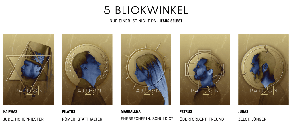 Passion 21 ist eine spannende Inszenierung der Ereignisse in der Passionswoche, die mit dem leeren Grab an Ostern endet. Alles dreht sich um Jesus, der selbst nicht erscheint. Aber aus der Perspektive von 5 Protagonisten betrachtet wird. Toll gemacht.