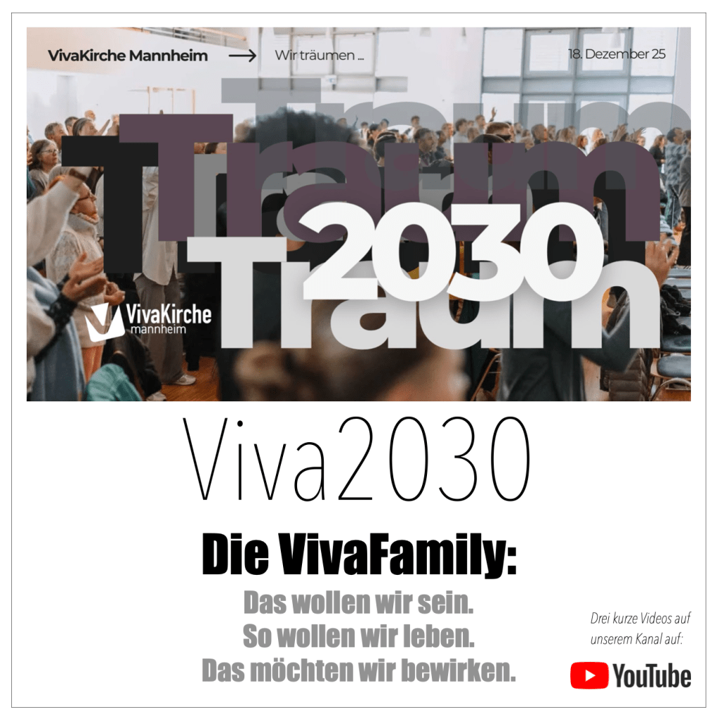 Seit Juni 2021 leiten wir den 6. Prozess der Gemeindeerneuerung. Aus der Volksmission Mannheim wurde die VivaKirche Mannheim. Die Gemeinde selbst wollte seit vielen Jahren einen Namenswechsel. Wie der Prozess sonst läuft, was uns bewegt und beschäftigt, findet ihr in den Beiträgen, die unregelmäßig auf dem Blog erscheinen.